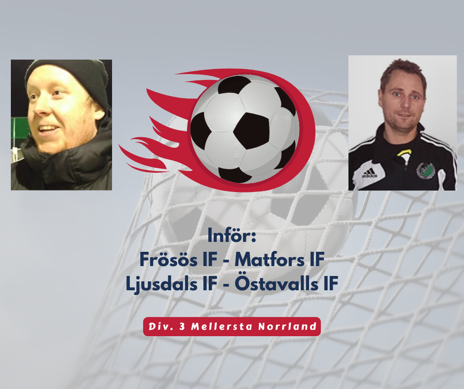 18 apr 2022 • Div. 3 Mellersta NorrlandBåde Matfors och Östavall kommer med en seger i ryggen efter seriepremiären.Idag väntar bortamatcher för båda lagen denna annandagpåsk. Matfors möter ...