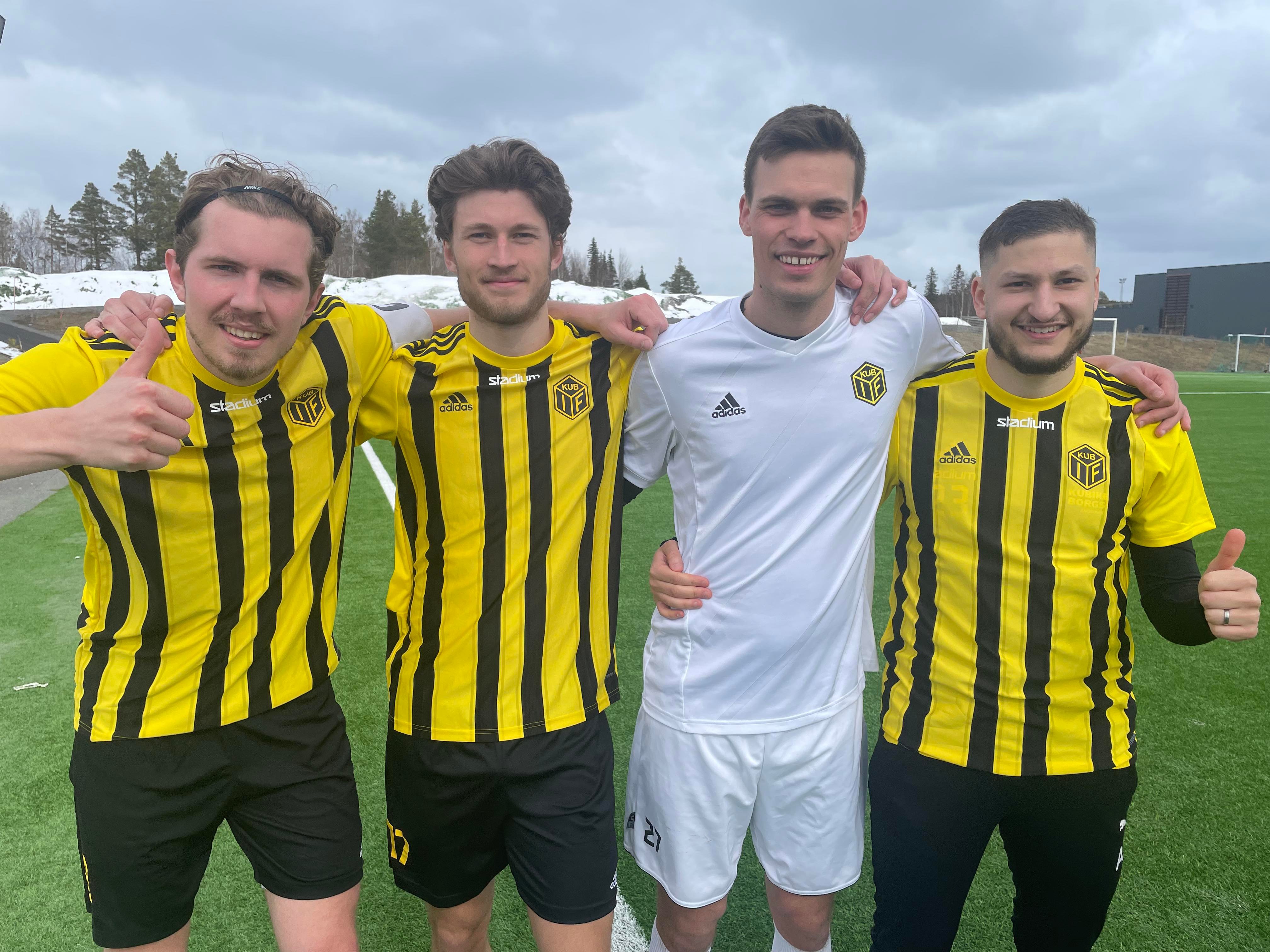 Kubenhjältarna för dagen efter 4-0 borta mot Dvärsätt. Fr v William Östman (2 mål), Tim Jonsson (1), debuterande målvakten Edvin Lund Borg (höll nollan) och Ali Mahmoud (1)